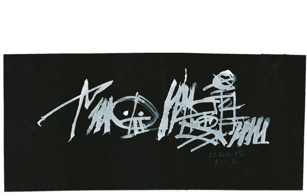 Alle, die spontanen wie die gebauten Arbeiten, sind reine Form, und zugleich – das kann bei Heinz Beier nicht anders sein – erzählen sie etwas. Ich sehe zum Beispiel nicht nur die frisch und frech mit Deckweiß aufs schwarze Papier geworfenen Zeichen in Schriftnähe, sondern ich werde auch angesehen – von zwei scharfen weißen Pünktchen, die aus einer Art Buchstabe auf einmal eine Art Gesicht malen.